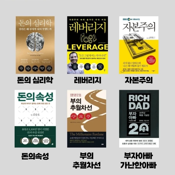 김승호 회장『돈의 속성』, 켈리 최 회장『웰씽킹』, MJ 드마코『부의 추월차선』, 자청『역행자』, 존리의 부자학교 존리 대표, 론다 번『더 시크릿』, 하브 에커『백만장자 시크릿』, 로버트 기요사키『부자 아빠 가난한 아빠』 등이 전하는 핵심 메시지를 정리해 보았습니다.