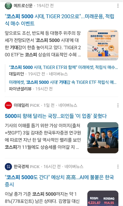 실제 기사에서는: 코스피가 이미 4000선을 돌파했고, 일부 증권사들은 내년이나 향후 몇 년 내 5000포인트 가능성을 제시하고 있어요.