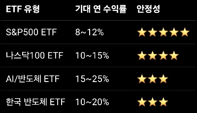 6️⃣ ETF 예상 연 수익률 비교 (현실적인 범위)