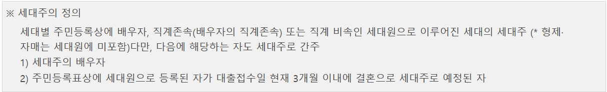 • 세대주가 대출접수일 현재 민법상 성년인 세대주