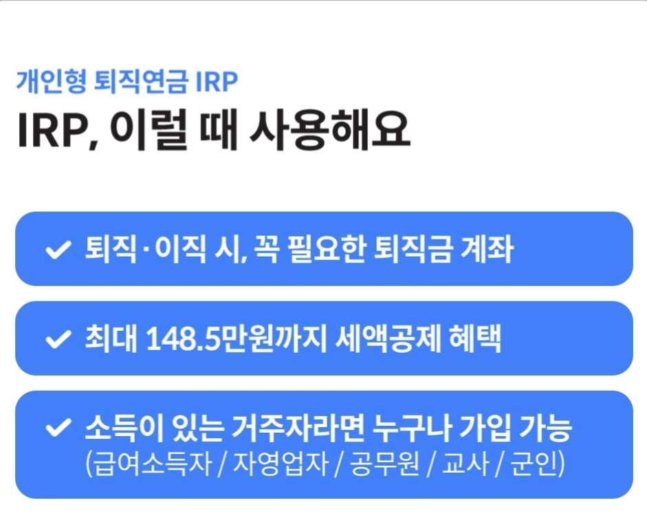IRP는 퇴직연금 서비스를 제공하는 금융기관이면 어디서든 가입할 수 있다.