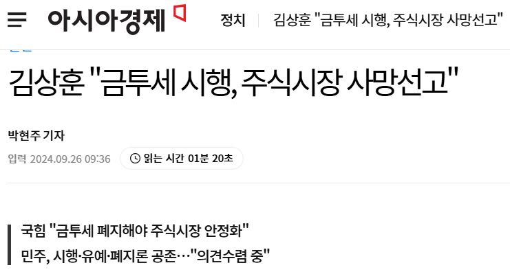 그래서 아직까지는 금투세를 유예 또는 폐지하자는 주장에 힘이 실리는 이유이다.