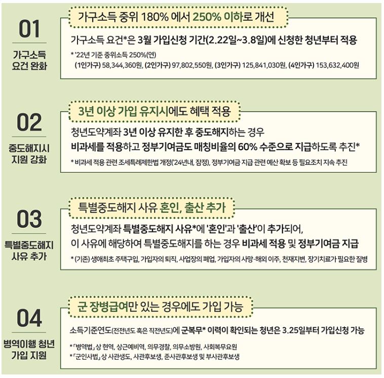 청년세대의 공정한 도약의 기회 보장(국정과제 91)을 위해 중장기 자산형성 지원으로 사회 출발 시 자립할 수 있는 기반 마련하도록 2023년 6월에 출시되었다.