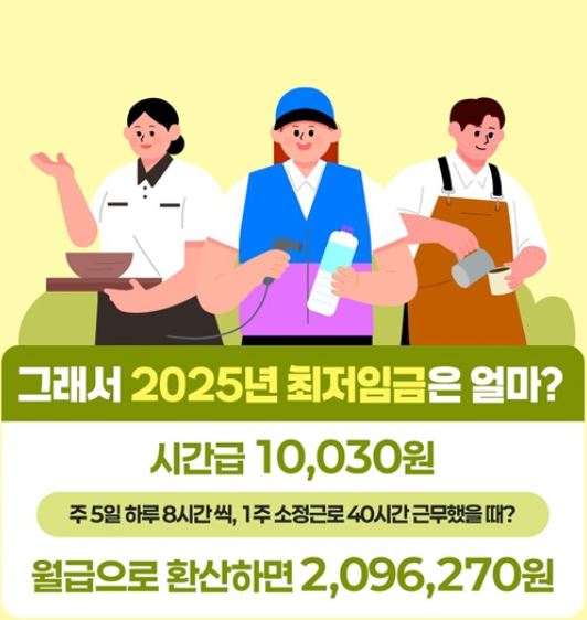 2025년 1월 1일부터 최저임금이 시간급 1만 30원으로 인상됩니다.